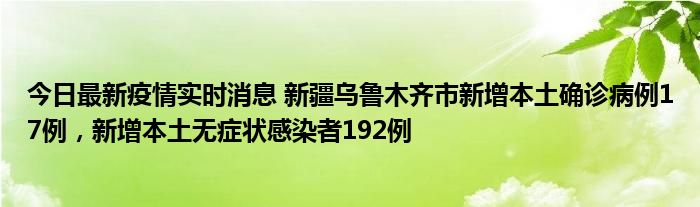 今日最新疫情实时消息 新疆乌鲁木齐市新增本土确诊病例17例,新增本土无症状感染者192例