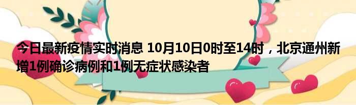 今日最新疫情实时消息 10月10日0时至14时,北京通州新增1例确诊病例和1例无症状感染者