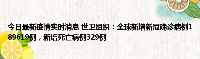 今日最新疫情实时消息 世卫组织:全球新增新冠确诊病例189619例,新增死亡病例329例