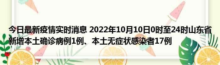 您的位置:首页 >动态频道 > 聚焦疫情 > 今日最新疫情实时消息 2022年10月10日0时至24时山东省新增本土确诊病例1例、本土无症状感染者17例 2022-10-11 16:18:09 • 来源: 导读 免责声明:本文由用户上传,如有侵权请联系删除! 上一篇:今日最新疫情实时消息 10月11日0-9时,海口市新增1例确诊病例 下一篇:今日最新疫情实时消息 深圳10月10日新增14例确诊病例和19例无症状感染者