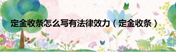你必须为押金写一张收据。定金收条和存单是同一张凭证。定金收据只是定金支付的凭证,只代表双方达成了定金合同,定金规则对双方都适用。具有一定的法律效力。定金也可以书面约定。当事人应当在定金合同中约定交付定金的期限。押金从实际支付押金之日起生效。