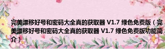 完美漂移好号和密码大全真的获取器 V1.7 绿色免费版(完美漂移好号和密码大全真的获取器 V1.7 绿色免费版功能简介)