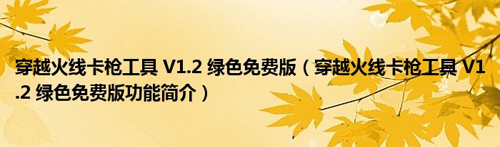 导读 大家好,关于穿越火线卡枪工具 V1 2 绿色免费版,穿越火线卡枪工具 V1 2 绿色免费版功能简介这个很多人还不知道,小勒来为大家解答以上的