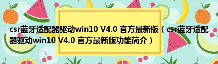 csr蓝牙适配器驱动win10 V4.0 官方最新版(csr蓝牙适配器驱动win10 V4.0 官方最新版功能简介)