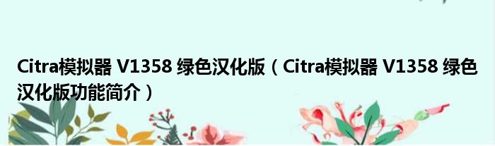 Citra模拟器 V1358 绿色汉化版(Citra模拟器 V1358 绿色汉化版功能简介)
