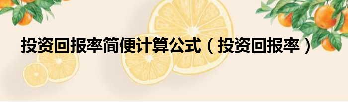 大家好,小庞来为大家解答以上问题,投资回报率简便计算公式,投资回报率很多人还不知道,现在让我们一起来看看吧!