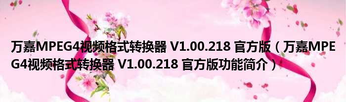 万嘉MPEG4视频格式转换器 V1.00.218 官方版(万嘉MPEG4视频格式转换器 V1.00.218 官方版功能简介)