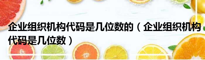 企业组织机构代码是几位数的(企业组织机构代码是几位数)