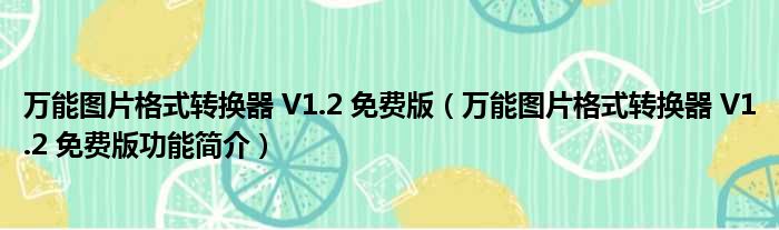 万能图片格式转换器 V1.2 免费版(万能图片格式转换器 V1.2 免费版功能简介)