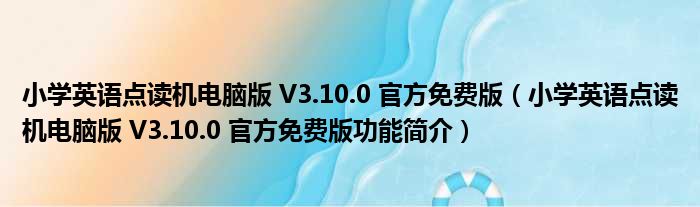 导读 大家好,关于小学英语点读机电脑版 V3 10 0 官方免费版,小学英语点读机电脑版 V3 10 0 官方免费版功能简介这个很多人还不知道,小勒来为