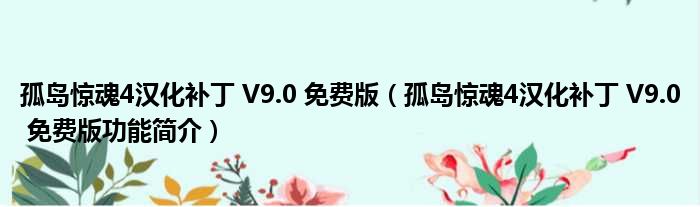 导读 大家好,关于孤岛惊魂4汉化补丁 V9 0 免费版,孤岛惊魂4汉化补丁 V9 0 免费版功能简介这个很多人还不知道,小勒来为大家解答以上的问题,