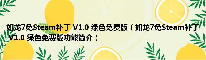 如龙7免Steam补丁 V1.0 绿色免费版(如龙7免Steam补丁 V1.0 绿色免费版功能简介)