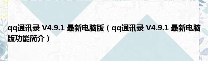 qq通讯录 V4.9.1 最新电脑版(qq通讯录 V4.9.1 最新电脑版功能简介)