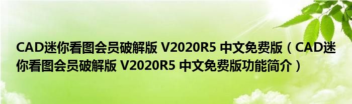 CAD迷你看图会员破解版 V2020R5 中文免费版(CAD迷你看图会员破解版 V2020R5 中文免费版功能简介)