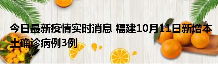 10月11日0~24时,福建省报告新增本土确诊病例3例(福州市2例,为无症状感染者转确诊;厦门市1例)