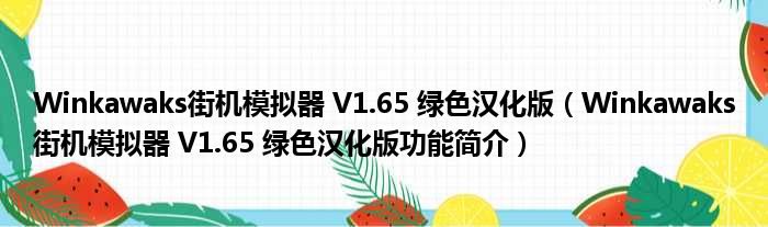 Winkawaks街机模拟器 V1.65 绿色汉化版(Winkawaks街机模拟器 V1.65 绿色汉化版功能简介)