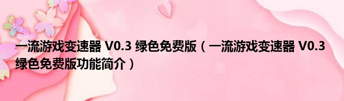 一流游戏变速器 V0.3 绿色免费版(一流游戏变速器 V0.3 绿色免费版功能简介)
