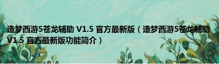 造梦西游5苍龙辅助 V1.5 官方最新版(造梦西游5苍龙辅助 V1.5 官方最新版功能简介)
