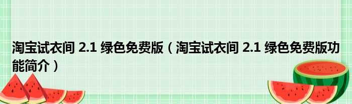 大家好,关于淘宝试衣间 2.1 绿色免费版,淘宝试衣间 2.1 绿色免费版功能简介这个很多人还不知道,小勒来为大家解答以上的问题,现在让我们一起来看看吧!