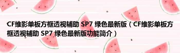CF维影单板方框透视辅助 SP7 绿色最新版(CF维影单板方框透视辅助 SP7 绿色最新版功能简介)