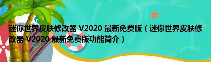 导读 大家好,关于迷你世界皮肤修改器 V2020 最新免费版,迷你世界皮肤修改器 V2020 最新免费版功能简介这个很多人还不知道,小勒来为大家解答