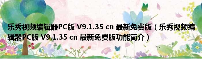 乐秀视频编辑器PC版 V9.1.35 cn 最新免费版(乐秀视频编辑器PC版 V9.1.35 cn 最新免费版功能简介)