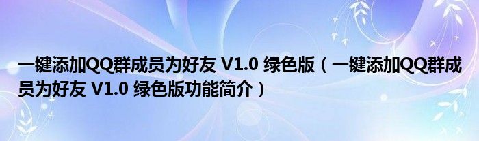 一键添加QQ群成员为好友 V1.0 绿色版(一键添加QQ群成员为好友 V1.0 绿色版功能简介)