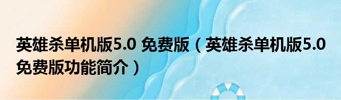 导读 大家好,关于英雄杀单机版5 0 免费版,英雄杀单机版5 0 免费版功能简介这个很多人还不知道,小勒来为大家解答以上的问题,现在让我们一起来
