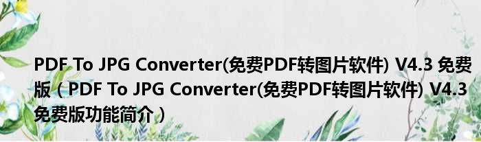 PDF To JPG Converter(免费PDF转图片软件) V4.3 免费版(PDF To JPG Converter(免费PDF转图片软件) V4.3 免费版功能简介)