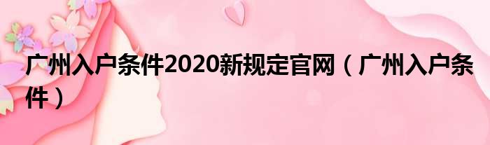 广州入户条件2020新规定官网(广州入户条件)