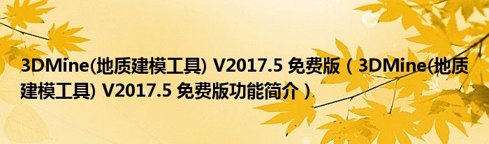3DMine(地质建模工具) V2017.5 免费版(3DMine(地质建模工具) V2017.5 免费版功能简介)