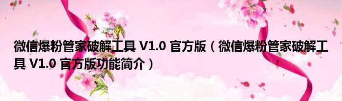 导读 大家好,关于微信爆粉管家破解工具 V1 0 官方版,微信爆粉管家破解工具 V1 0 官方版功能简介这个很多人还不知道,小勒来为大家解答以上的