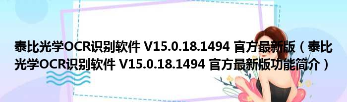 泰比光学OCR识别软件 V15.0.18.1494 官方最新版(泰比光学OCR识别软件 V15.0.18.1494 官方最新版功能简介)
