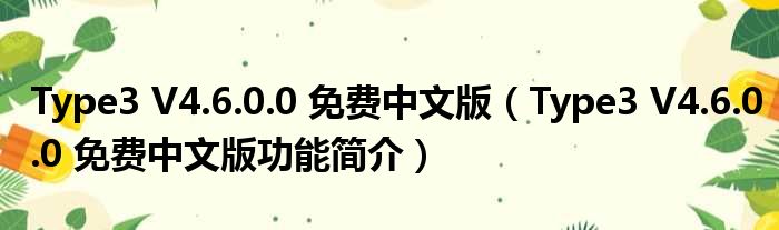 Type3 V4.6.0.0 免费中文版(Type3 V4.6.0.0 免费中文版功能简介)