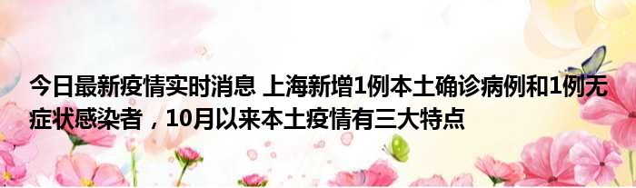 您的位置:首页 >动态频道 > 聚焦疫情 > 今日最新疫情实时消息 上海新增1例本土确诊病例和1例无症状感染者,10月以来本土疫情有三大特点 2022-10-13 10:46:07 • 来源: 导读 免责声明:本文由用户上传,如有侵权请联系删除! 上一篇:今日最新疫情实时消息 广东中山发现1例确诊病例 下一篇:今日最新疫情实时消息 上海新增社会面1例本土确诊病例、1例无症状感染者,两地列为中风险区