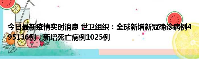 今日最新疫情实时消息 世卫组织:全球新增新冠确诊病例495136例,新增死亡病例1025例