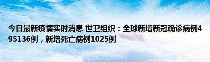 今日最新疫情实时消息 世卫组织:全球新增新冠确诊病例495136例,新增死亡病例1025例