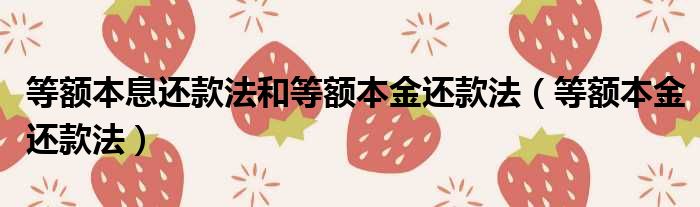 等额本息还款法和等额本金还款法(等额本金还款法)