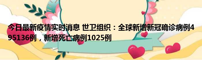 今日最新疫情实时消息 世卫组织:全球新增新冠确诊病例495136例,新增死亡病例1025例