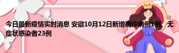 今日最新疫情实时消息 安徽10月12日新增确诊病例1例、无症状感染者23例