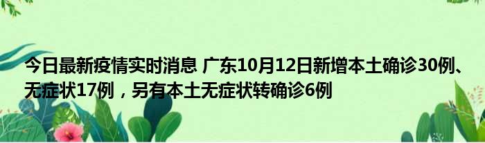 今日最新疫情实时消息 广东10月12日新增本土确诊30例、无症状17例,另有本土无症状转确诊6例
