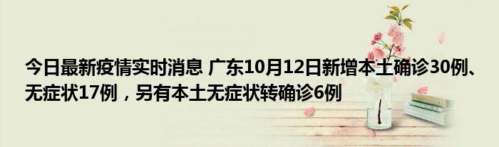 今日最新疫情实时消息 广东10月12日新增本土确诊30例、无症状17例,另有本土无症状转确诊6例