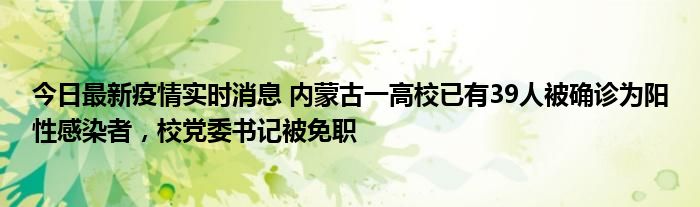 您的位置:首页 >动态频道 > 聚焦疫情 > 今日最新疫情实时消息 内蒙古一高校已有39人被确诊为阳性感染者,校党委书记被免职 2022-10-13 14:42:08 • 来源: 导读 免责声明:本文由用户上传,如有侵权请联系删除! 上一篇:今日最新疫情实时消息 江苏10月12日新增本土确诊5例、无症状25例 下一篇:今日最新疫情实时消息 2022年10月12日0时至24时山东省无新增本土确诊病例,新增本土无症状感染者25例