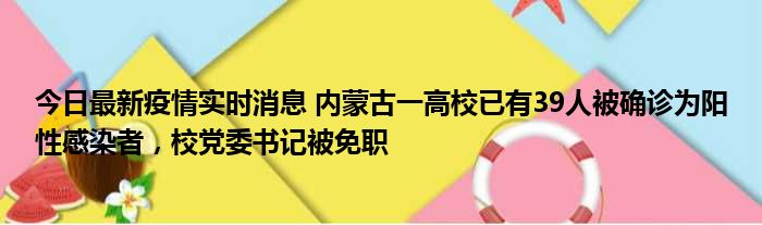 您的位置:首页 >动态频道 > 聚焦疫情 > 今日最新疫情实时消息 内蒙古一高校已有39人被确诊为阳性感染者,校党委书记被免职 2022-10-13 15:26:09 • 来源: 导读 免责声明:本文由用户上传,如有侵权请联系删除! 上一篇:今日最新疫情实时消息 重庆10月12日新增本土确诊病例13例、本土无症状17例 下一篇:今日最新疫情实时消息 2022年10月12日0时至24时山东省无新增本土确诊病例,新增本土无症状感染者25例