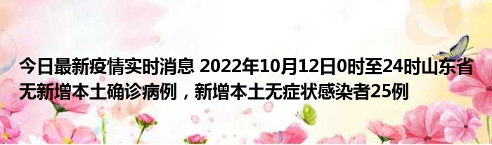 您的位置:首页 >动态频道 > 聚焦疫情 > 今日最新疫情实时消息 2022年10月12日0时至24时山东省无新增本土确诊病例,新增本土无症状感染者25例 2022-10-13 15:38:09 • 来源: 导读 免责声明:本文由用户上传,如有侵权请联系删除! 上一篇:今日最新疫情实时消息 内蒙古一高校已有39人被确诊为阳性感染者,校党委书记被免职 下一篇:今日最新疫情实时消息 河南昨日新增本土确诊病例12例、本土无症状感染者23例