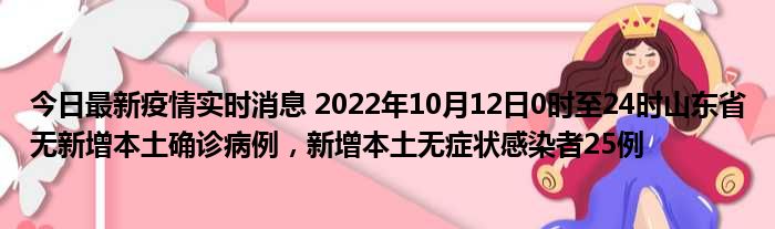 您的位置:首页 >动态频道 > 聚焦疫情 > 今日最新疫情实时消息 2022年10月12日0时至24时山东省无新增本土确诊病例,新增本土无症状感染者25例 2022-10-13 16:28:06 • 来源: 导读 免责声明:本文由用户上传,如有侵权请联系删除! 上一篇:今日最新疫情实时消息 内蒙古一高校已有39人被确诊为阳性感染者,校党委书记被免职 下一篇:今日最新疫情实时消息 河南昨日新增本土确诊病例12例、本土无症状感染者23例