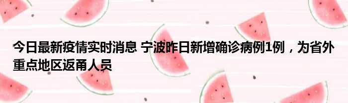 您的位置:首页 >动态频道 > 聚焦疫情 > 今日最新疫情实时消息 宁波昨日新增确诊病例1例,为省外重点地区返甬人员 2022-10-13 16:32:09 • 来源: 导读 免责声明:本文由用户上传,如有侵权请联系删除! 上一篇:今日最新疫情实时消息 河南昨日新增本土确诊病例12例、本土无症状感染者23例 下一篇:今日最新疫情实时消息 重庆10月12日新增本土确诊病例13例、本土无症状17例