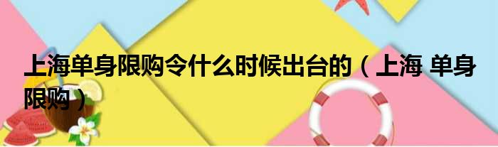 上海单身限购令什么时候出台的(上海 单身 限购)