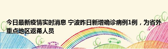 您的位置:首页 >动态频道 > 聚焦疫情 > 今日最新疫情实时消息 宁波昨日新增确诊病例1例,为省外重点地区返甬人员 2022-10-13 17:02:06 • 来源: 导读 免责声明:本文由用户上传,如有侵权请联系删除! 上一篇:今日最新疫情实时消息 河南昨日新增本土确诊病例12例、本土无症状感染者23例 下一篇:今日最新疫情实时消息 重庆10月12日新增本土确诊病例13例、本土无症状17例