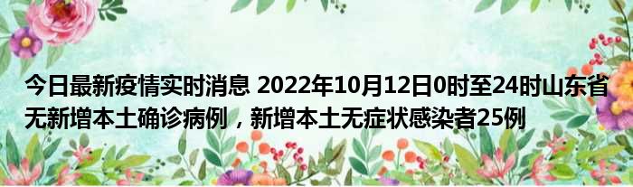 您的位置:首页 >动态频道 > 聚焦疫情 > 今日最新疫情实时消息 2022年10月12日0时至24时山东省无新增本土确诊病例,新增本土无症状感染者25例 2022-10-13 17:08:06 • 来源: 导读 免责声明:本文由用户上传,如有侵权请联系删除! 上一篇:今日最新疫情实时消息 内蒙古一高校已有39人被确诊为阳性感染者,校党委书记被免职 下一篇:今日最新疫情实时消息 河南昨日新增本土确诊病例12例、本土无症状感染者23例